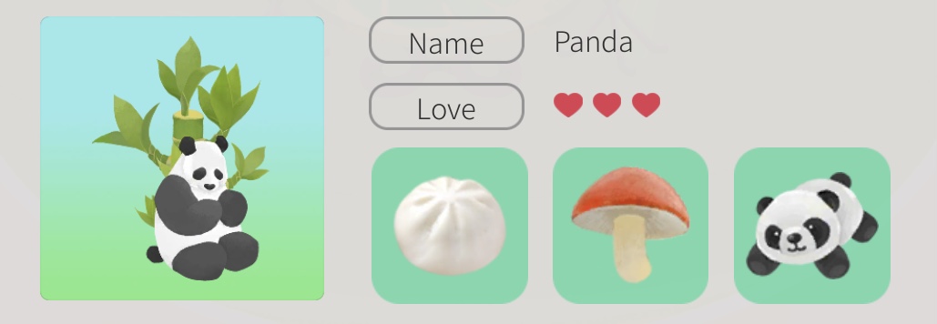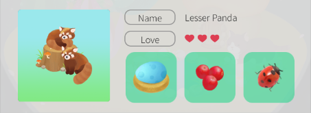 The Panda will only appear in your terrarium when surrounded by 3 small plants. Lesser Panda loves to eat salad and fruit. Same as Lesser Panda.